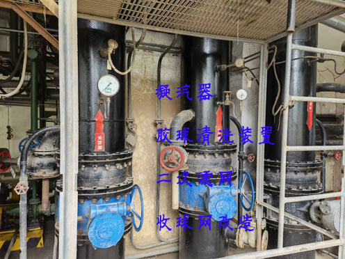 膠球清洗,冷凝器自動在線膠球清洗裝置系統(tǒng)安裝完成后,按照膠球清洗裝置的操作說明,啟動清洗裝置,使其開始噴射膠球進(jìn)行清洗。通常會有設(shè)定的循環(huán)周期和噴射壓力。根據(jù)需要,可以調(diào)整膠球清洗裝置的參數(shù)或增加清洗周期。