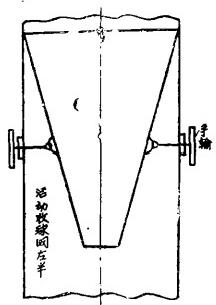 該廠試驗使用了一種活動式錐形收球網(wǎng)(圖甲)。它保留了錐形固定收球網(wǎng)收球效果好的優(yōu)點。在停用時又可以“短路”以減少水阻。(在使用時壓差0.041—0.048公斤/屬米2,在短路時壓差0.034—0.044公斤/厘米2)。收球網(wǎng)用活動鉸在上部和循環(huán)水出水管連接,中部用杠桿系統(tǒng)開關,下部和膠球清洗裝置進水管相連。