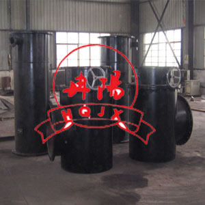 4、分匯器是一個三通閥,通過導(dǎo)向板的切換可使膠球進(jìn)入需要清洗的一側(cè)凝汽器中工作。一般一臺機(jī)組需兩臺分匯器,其進(jìn)口通徑為DN100,分配口為DN89,膠球投用時可通過窺視窗觀察運(yùn)行情況。