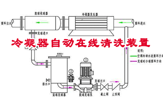 1、冷凝器自動在線膠球清洗系統組成與運行圖結構