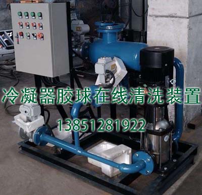 冷凝器膠球自動在線清洗裝置系列冷凝器膠球自動在線清洗裝置采用純物理方法,利用系統自帶水泵加壓,將清洗膠球從發球器發送到冷凝器中,依靠水流產生的沖刷力和膠球與換熱管壁產生的摩擦力擦洗掉換熱管內壁的水垢、污垢以及微生物膜。在冷卻水出口端通過收球器利用水流力學原理將球回收至發球機,從而完成一次清洗循環?刂破骺稍O置清洗頻率或時間,以及隨空調主機的開啟自動運行功能,實現全自動在線清洗。始終保持冷凝管內壁潔凈,從而提高了冷凝器的熱交換效率,降低能耗,提高能效,節省能源。