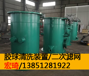 膠球清洗裝置原理是將略大于管子內(nèi)徑的彈性膠球在在循環(huán)水的作用下通過冷凝器管,膠球前產(chǎn)生噴射水流,同時膠球摩擦管壁,從而起到清洗污垢的作用。因此,保證系統(tǒng)運行可靠、高的收球率、使膠球順利通過冷凝管并有確實的擦洗、讓每一根冷凝管有均等的清洗頻率、確保膠球的摩擦不損傷管壁等,成為膠球清洗裝置的技術關鍵。先將比重與水相近(0.98-1.02)的膠球加進裝球室后,啟動膠球泵,膠球在比循環(huán)水壓力略高一點的水流帶動下進入凝汽器水室進口,隨即同循環(huán)水混合并流向水室而進入冷凝管,由于膠球輸送管出口朝下,故球分散均勻進入凝汽器冷凝管。