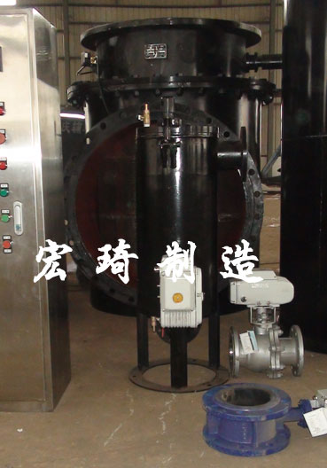 二次濾網安裝在凝汽器水側進口管道上,主要作用是過濾、清潔冷卻水,除去可能堵塞凝汽器管板、管孔的雜物,確保膠球正常循環運行,提高回收率。當冷卻水夾帶雜物通過二次濾網時,雜物被擋在濾網的迎水面,凈化的冷卻水進入凝汽器。被濾網迎水面捕捉的雜物,通過網芯旋轉,水流反向流動沖洗,由排污閥排出系統外。