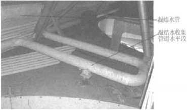 凝結(jié)水收集管的清理。凝結(jié)水收集管用于匯集各個(gè)換熱單元冷凝下來(lái)的凝結(jié)水,并引流至熱井,管徑一般較小。這段管道水平段較多,1臺(tái)600MW機(jī)組空冷系統(tǒng)凝結(jié)水收集管水平管(dl68mm,圖7)累計(jì)長(zhǎng)達(dá)約960m,現(xiàn)在的冷態(tài)沖洗因沖洗水流量太小無(wú)法達(dá)到,所以特別建議對(duì)凝結(jié)水收集管進(jìn)行單獨(dú)且大流量沖洗,仍然用沖洗凝結(jié)水管時(shí)安裝的臨時(shí)沖洗管道,將原先的凝結(jié)水管沖洗出口端封閉,打開(kāi)凝結(jié)水收集管的進(jìn)水閥門(mén),將收集管上的排污法蘭打開(kāi),用高速水流將收集管內(nèi)部的污物沖出系統(tǒng),從凝結(jié)水收集總管處的排污法蘭處排放。沖洗至出水清澈、無(wú)大顆粒雜質(zhì)為止。然后關(guān)閉排污法蘭,仍用臨時(shí)沖洗水對(duì)凝結(jié)水收集管及熱井進(jìn)行沖洗,將雜質(zhì)沖到熱井,后清理熱井。人工清理熱井時(shí),可以先進(jìn)行掃除,然后用海綿將泥水吸凈,后,用面團(tuán)粘除細(xì)小的機(jī)械微粒。此外,建議凝結(jié)水收集管在安裝時(shí)整體呈一定的斜率,向下連接至熱井。
