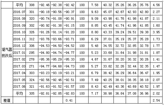 從凝汽器端差統(tǒng)計數(shù)據(jù)可知,安裝膠球清洗裝置后,#1機(jī)組和#2機(jī)組凝汽器端差在夏季工況和冬季工況下都得到了很好的保持,較設(shè)計值降低2~4℃,較技改前降低2~3℃,且端差保持較好,沒有隨著膠球清洗裝置機(jī)組運行時間而出現(xiàn)較大的變化。