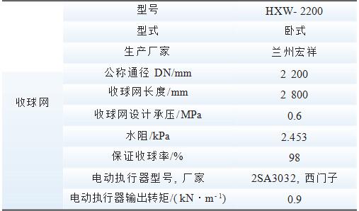 電廠2臺(tái)600MW機(jī)組凝汽器膠球清洗裝置系統(tǒng)采用國(guó)內(nèi)某公司生產(chǎn)的產(chǎn)品,設(shè)備技術(shù)參數(shù)見(jiàn)表1所示。在分系統(tǒng)調(diào)試過(guò)程中出現(xiàn)了收球率低于30%的問(wèn)題,這種狀態(tài)直接影響到凝汽器內(nèi)冷凝管的清潔度,進(jìn)而影響凝汽器的真空。根據(jù)計(jì)算,真空每下降1kPa,機(jī)組熱耗就增加0.6%~0.8%,同時(shí)凝汽器真空下降還會(huì)影響汽輪機(jī)的出力和安全性。國(guó)家標(biāo)準(zhǔn)要求膠球清洗裝置系統(tǒng)收球率達(dá)到90%為合格。為此,設(shè)備制造廠家派技術(shù)人員對(duì)膠球清洗裝置系統(tǒng)進(jìn)行了多次試